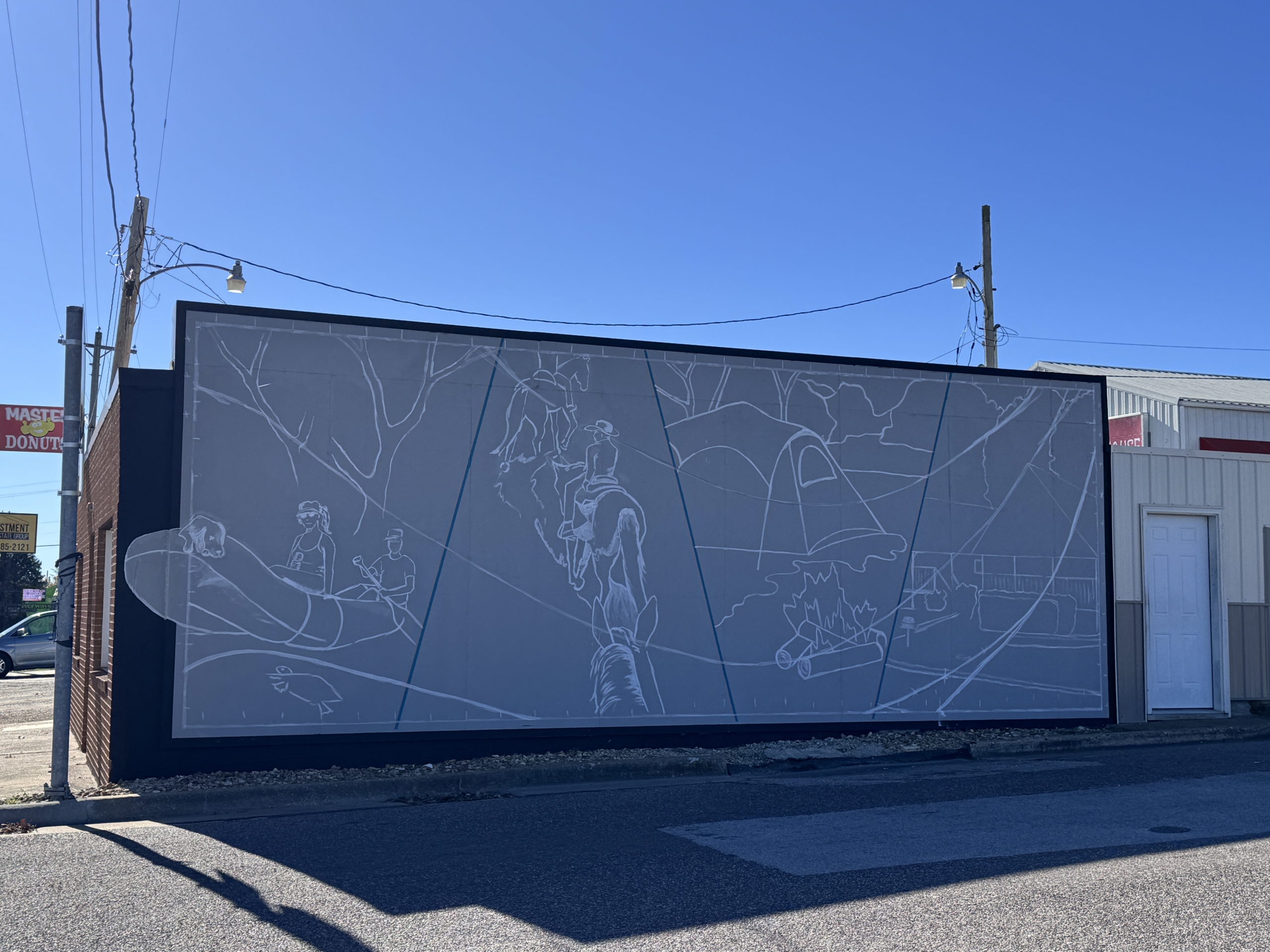 A new outer wall has been added to the building. It is primed and outlined and ready for paint. Watch its progress in 2025! Shelly Smith Steiger will create another masterpiece for our town.
